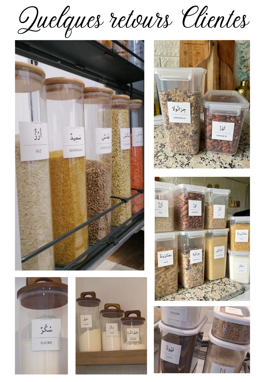 Commandez dès maintenant votre lot d'étiquettes et transformez votre cuisine en un espace organisé et élégant, tout en apprenant la langue arabe de manière simple et pratique.